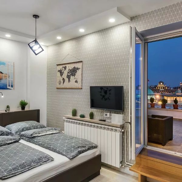 Enjoy a stylish experience at this centrally-located place. This luxury apartment offers stunning views of Novi Sad, a comfortable queen-sized bed, a modern kitchen , and a spacious living area.
