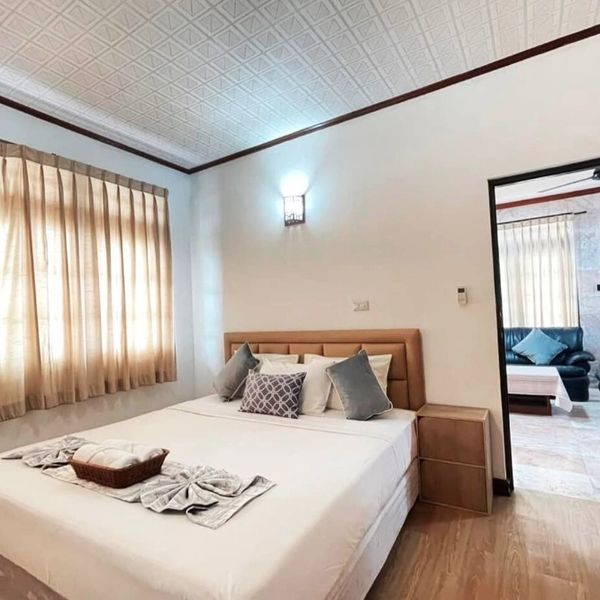 A classic, well-kept beachfront home with character and history on pristine Nai Phlao Beach, Khanom. Enjoy panoramic ocean views and unforgettable sunrises from your bedroom. Two bedrooms, two bathrooms, and a spacious living area offer comfort.